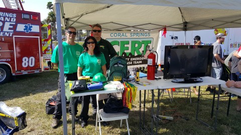 Our award winning team was out in the community today at the Coral Springs Family Fun Day and Car Show. It was an exciting and packed event full of activities and demos for the entire family. We did some public education including showing dozens of people how to do 'hands only' CPR, making our community a safer place. We talked to many people interested in our exciting and FREE training and we hope to see them in our upcoming class. If interested there is still room, click on the CERT Academy menu and fill out an application!