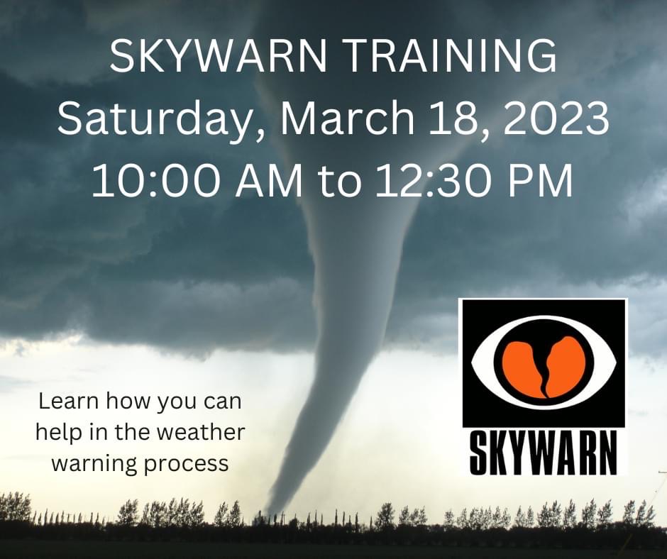 A SKYWARN class will be held on Saturday, March 18, 2023 from 10:00 AM to 12:30 PM at the Broward County Emergency Operations Center, 201 NW 84 Ave., Plantation, FL 33324.